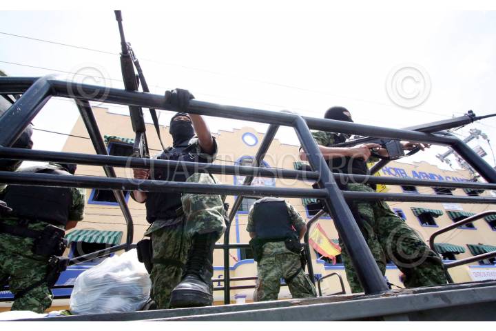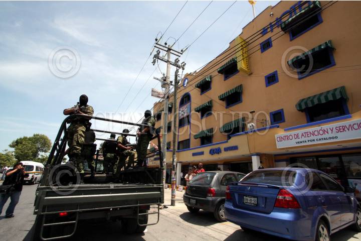 CANCÚN, QUINTANA ROO, 23AGOSTO2009.- Imágenes del operativo del ejercito del viernes pasado, donde fueron detenidos los 17 "Zetas" del Cártel del Golfo contratados en Reynosa, Tamaulipas, que se hospedaron en el hotel "Avenida Cancún" y que llegaron a Cancún desde el martes pasado para recuperar la plaza y enfrentar a "Los Pelones" del cártel de los hermanos "Beltrán Leyva" Con esta detención, el reacomodo en la célula de "Los Zetas" que opera en Cancún, tendrá que ser replanteado para poder pelar por la "plaza" del narcotráfico y enfrentar la ofensiva abierta de "Los Pelones" Hasta este sábado se mantiene en total hermetismo se mantiene la detención de los 17 sujetos ligados a "Los Zetas" que fueron detenidos por el Ejército durante la madrugada del viernes, como parte del exitoso operativo realizado por elementos del Ejército. FOTO: AMARANTA PRIETO/CUARTOSCURO.COM