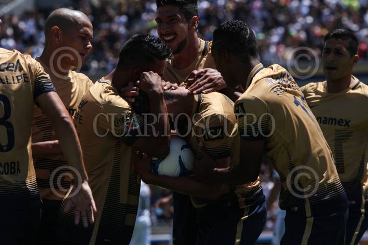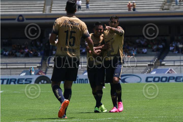 MÉXICO, D.F., 26JULIO2015.- Los Pumas de la UNAM vencieron 3-0 a los Rayados de Monterrey en el Estadio Universitario, en la Jornada 1 del torneo de Apertura 2015, con los gol de Alejandro Castro, Gerardo Alcoba y el ultimo de Ismael Sosa, los tres goles se presentaron durante el primer tiempo del partido. FOTO: ISABEL MATEOS /CUARTOSCURO.COM