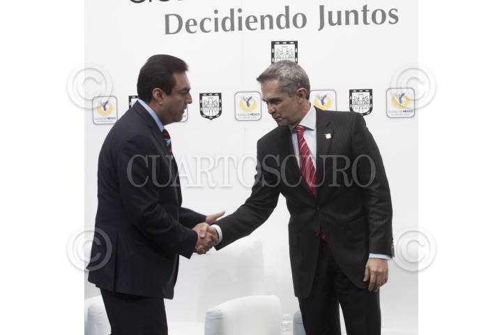 MÉXICO, D.F., 28MARZO2012.- Marcelo Ebrard, jefe de gobierno de la ciudad y Jesús Orta Martínez durante la toma de protesta del Oficial Mayor de la administración capitalina durante un evento que se realizo en el patio del Antiguo Palacio del Ayuntamiento. FOTO: RODOLFO ANGULO /CUARTOSCURO.COM