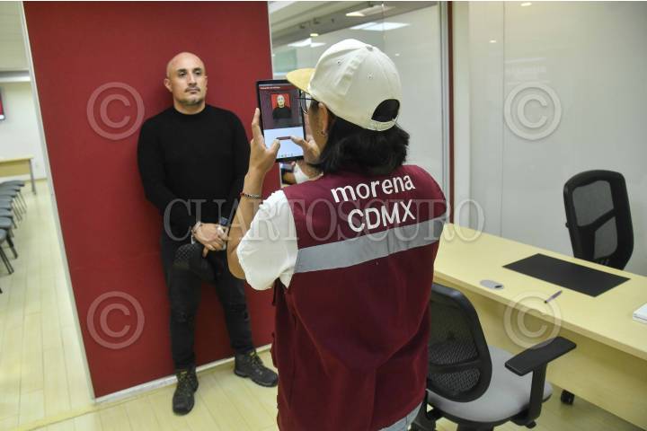 CIUDAD DE MÉXICO, 11FEBRERO2025.- Módulo de afiliación y reafiliación para el partido político Morena ubicado en las instalaciones del grupo parlamentario guinda la Cámara de Diputados. El partido busca llevar a los 10 millones de partidarios. FOTO: MARIO JASSO/CUARTOSCURO.COM
