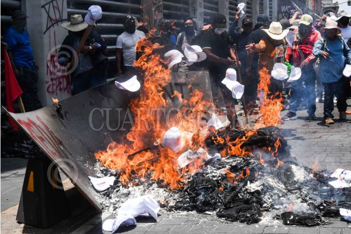 CIUDAD DE MÉXICO, 05JUNIO2025.- Maestros de la Coordinadora Estatal de Trabajadores de Educación de Guerrero (CETEG) irrumpieron la sede del Sindicato Nacional de Trabajadores de la Educación (SNTE) ubicada en República de Venezuela número 44, en donde quemaron diversos objetos y mobiliario de las oficinas, esto en el marco las protestas que el magisterio ha realizado en exigencia de la abrogación de la ley del ISSSTE de 2007. FOTO: MARIO JASSO/CUARTOSCURO.COM