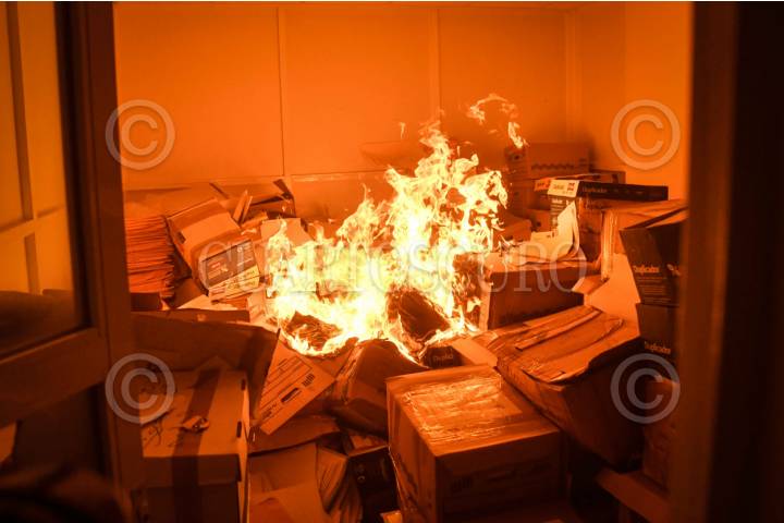 CIUDAD DE MÉXICO, 05JUNIO2025.- Bomberos apagaron el fuego de gorras y muebles de las instalaciones del Sindicato Nacional de Trabajadores de la Educación (SNTE) que ocasionaron un grupo de maestros de la Coordinadora Estatal de Trabajadores de la Educación de Guerrero (CETEG), afuera de este recinto en la calle de República de Venezuela en el Centro Histórico. FOTO: GRACIELA LÓPEZ/CUARTOSCURO.COM
