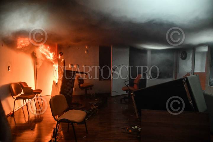 CIUDAD DE MÉXICO, 05JUNIO2025.- Un incendio se propagó dentro las oficinas del Sindicato Nacional de Trabajadores de la Educación (SNTE), el cual fue ocasionado por un grupo de maestros de la Coordinadora Estatal de Trabajadores de la Educación de Guerrero (CETEG) exigiendo un diálogo con Claudia Sheinbaum, presidenta de México, sobre la abrogación a la ley del ISSSTE del 2007. FOTO: GRACIELA LÓPEZ/CUARTOSCURO.COM