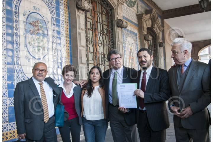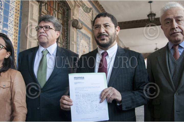 MÉXICO, D.F., 30MARZO2015.- Martí Batres Guadarrama, presidente del CEN de Morena y Ricardo Monreal, candidato a jefe delegacional en Cuauhtémoc por Morena, acudieron con aspirantes a alguna jefatura delegacional en el Distrito Federal a las oficinas de gobierno capitalino para solicitar una audiencia con el jefe de gobierno capitalino para tratar algunos temas sobre la ciudad, principalmente la participación de autoridades delegacionales para inducir el voto para las próximas elecciones del 7 de junio. FOTO: DIEGO SIMÓN SÁNCHEZ /CUARTOSCURO.COM