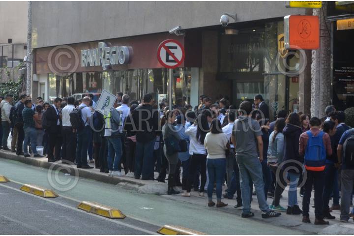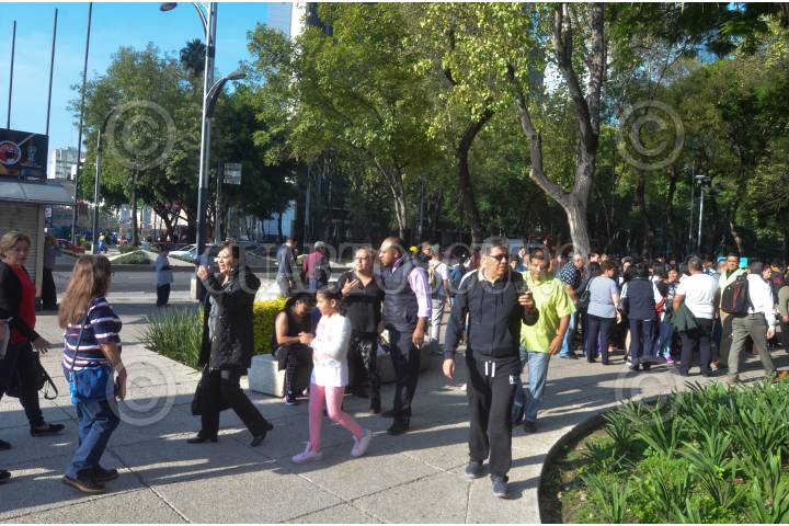 CIUDAD DE MÉXICO, 19JULIO2018.- Al cumplirse diez meses del sismo del 19 de septiembre de 2017 que causó considerables daños materiales y humanos hoy por la mañana se registró un sismo de 5.9 grados en la ciudad, con epicentro en Huajuapan de León, Oaxaca. Oficinistas de la colonia Juárez salieron de sus centros de trabajo para resguardarse en un sitio seguro. FOTO: ARMANDO MONROY/CUARTOSCURO.COM