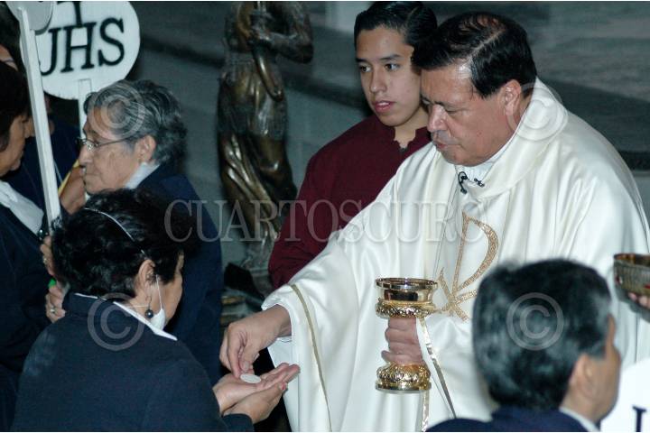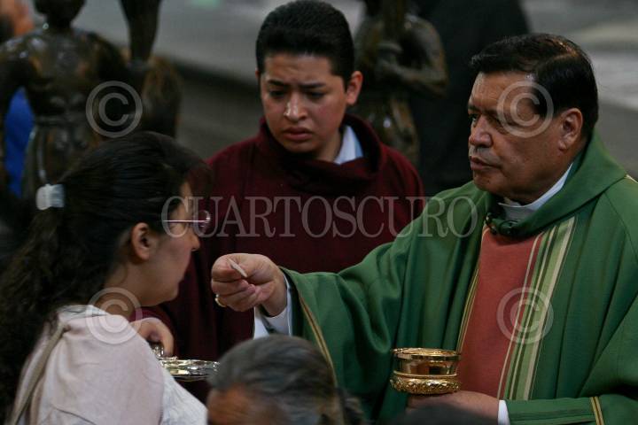 MÉXICO, D.F., 17MAYO2009.- El cardenal Norberto Rivera Carrera ofrece la comunión a los fieles dentro de la misa dominical que se celebro en la Catedral Metropolitana. FOTO: RODOLFO ANGULO/CUARTOSCURO.COM
