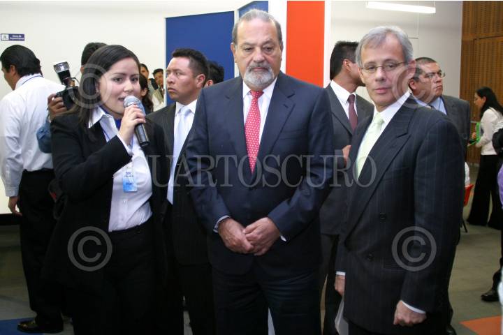 MÉXICO, D.F., 20ENERO2010.- El empresario Carlos Slim Helú acompañado de Javier Elgueas realizo un recorrido por el Centro de Tecnología Telmex ubicado en el Centro Histórico después de ofrecer una conferencia de prensa en donde anuncio el programa Telmex 2010. FOTO: RODOLFO ANGULO/CUARTOSCURO.COM