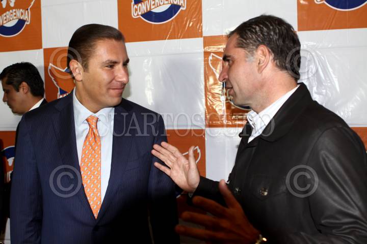 MÉXICO, D.F., 22OCTUBRE2010.- Rafael Moreno Valle, gobernador electo de Puebla conversa con Gabino Cue Monteagudo, gobernador electo de Oaxaca momentos antes de ofrecer una conferencia de prensa durante la Vigésima Segunda Sesión Ordinaria del Consejo Nacional de Convergencia que se realizo en el World Trade Center. FOTO: RODOLFO ANGULO/CUARTOSCURO.COM