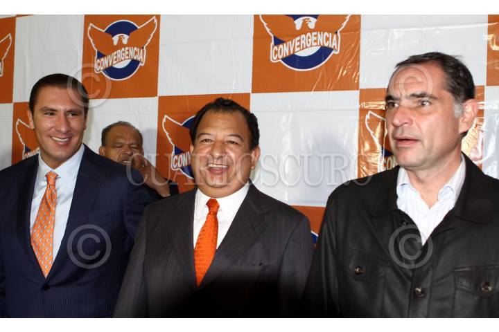 MÉXICO, D.F., 22OCTUBRE2010.- Rafael Moreno Valle, gobernador electo de Puebla; Luis Walton, dirigente nacional de Convergencia y Gabino Cue Monteagudo, gobernador electo de Oaxaca momentos antes de ofrecer una conferencia de prensa durante la Vigésima Segunda Sesión Ordinaria del Consejo Nacional de Convergencia que se realizo en el World Trade Center. FOTO: RODOLFO ANGULO/CUARTOSCURO.COM