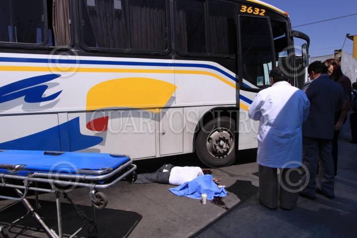 PUEBLA, PUEBLA, 23FEBRERO2009.- Miguel Montiel de 26 años de edad, boletero de la línea de autobuses Vía, perdió la vida al ser atropellado por una de las unidades de transporte para la cual trabajaba el chofer de la unidad 3632, aseguró que no vio al occiso cuando este ofrecia boletos en las afueras de la Central de Autobuses Puebla (CAPU). FOTO: JAVIER PALACIOS/CUARTOSCURO.COM