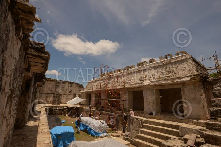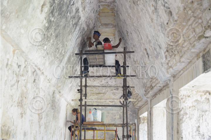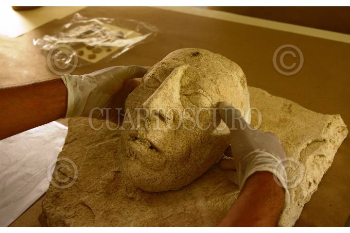 PALENQUE, CHIAPAS, 24AGOSTO2018.- El equipo del arqueólogo Arnoldo González descubrió una cabeza modelada en estuco del rey Pakal y una subestructura dentro del Palacio de Palenque, a las que se les están suministrando labores de conservación y restauración. FOTO: INAH /CUARTOSCURO.COM