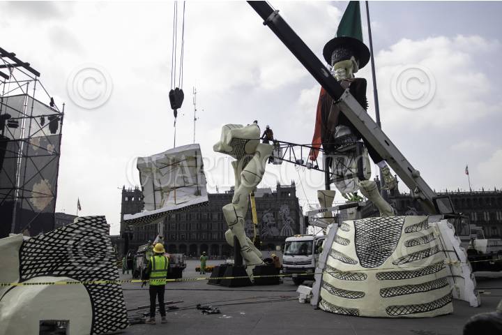 CIUDAD DE MÉXICO, 30OCTUBRE2023.- Fue reprogramada la inauguración de la Ofrenda Monumental del Zócalo Capitalino que se iba a realizar desde día ayer. Personal del Gobierno de la Ciudad trabaja para terminarla, sin embargo autoridades aún no informan de la nueva fecha pero dieron tentativa entre hoy mañana. FOTO: ANDREA MURCIA /CUARTOSCURO.COM