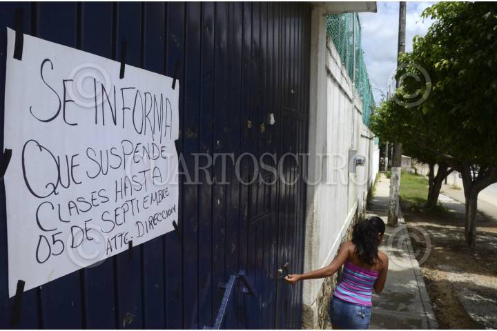 ACAPULCO, GUERRERO, 01SEPTIEMBRE2011.-Se suspendieron las clases en más de 120 escuelas de la zonas conurbana del puerto de Acapulco. En la gráfica se observa un letrero anuncia que no hay clases en la escuela Constitución de 1917 ubicada en la colonia las Parotas. Esto fue debido a el clima de violencia que se vive en el municipio. FOTO: BERNANDINO HERNÁNDEZ/CUARTOSCURO.COM