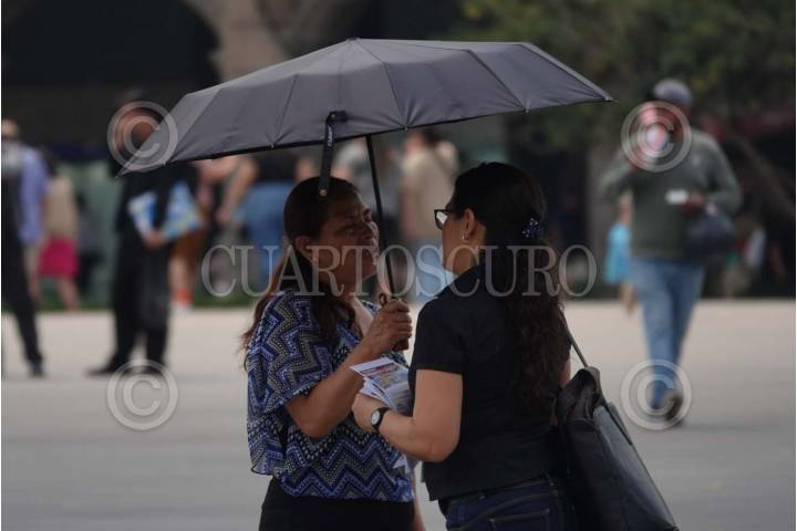 CIUDAD DE MÉXICO, 23MARZO2025.- Dos personas se protegen del sol utilizando una sombrilla. FOTO: DANIEL AUGUSTO/ CUARTOSCURO.COM