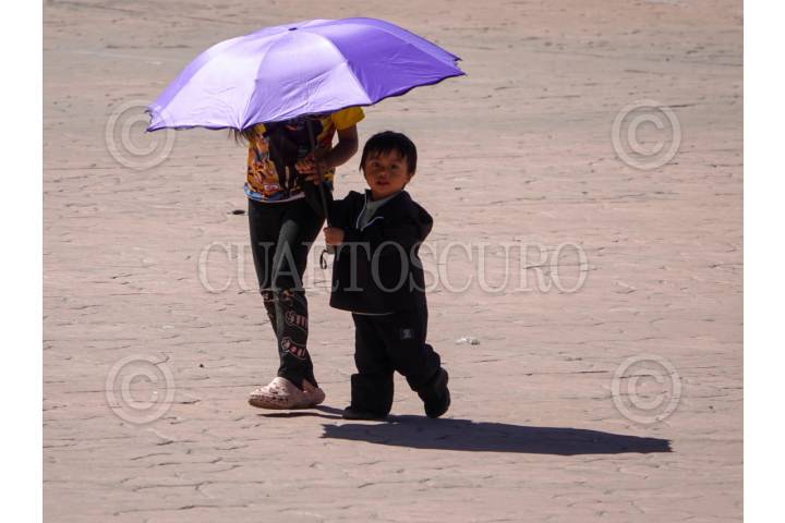 CIUDAD DE MÉXICO, 12ABRILO2025.- Niños se cubren del sol con una sombrilla mientras pasean. FOTO: MAGDALENA MONTIEL/CUARTOSCURO.COM