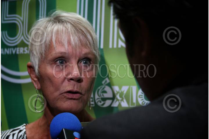 CIUDAD DE MÉXICO, 11OCTUBRE2018.-Debbie Meyer, medallista olímpico durante la conferencia de prensa en el antiguo palacio de Gobierno para dar detalles sobre el 50 aniversario de los Juegos Olímpicos de México en 1968. Seguido se realizó la presentación del boleto y tarjeta de metro conmemorativa a los Juegos Olímpicos de aquel año. FOTO: ANDREA MURCIA /CUARTOSCURO.COM