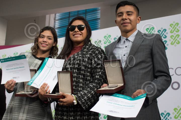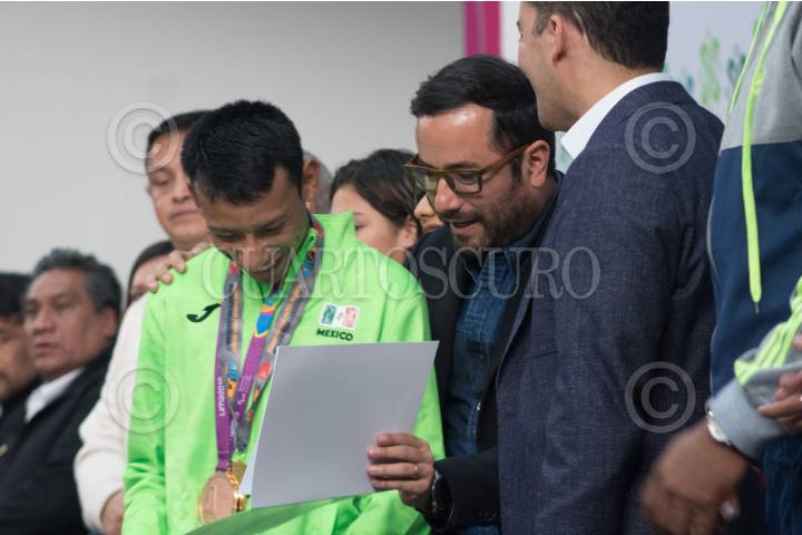 Diego López Díaz, medallista paralímpico en natación, recibe su reconocimiento.