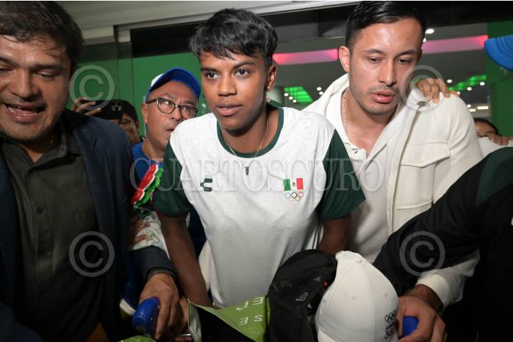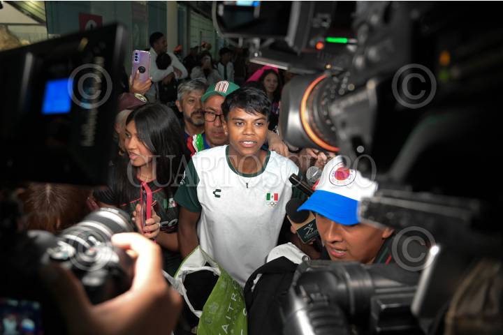 CIUDAD DE MÉXICO, 01AGOSTO2024.- Prisca Awiti, medallistas de plata en los juegos olímpicos de París 2024, arribó está noche a la capital del país. FOTO: DANIEL AUGUSTO/ CUARTOSCURO.COM