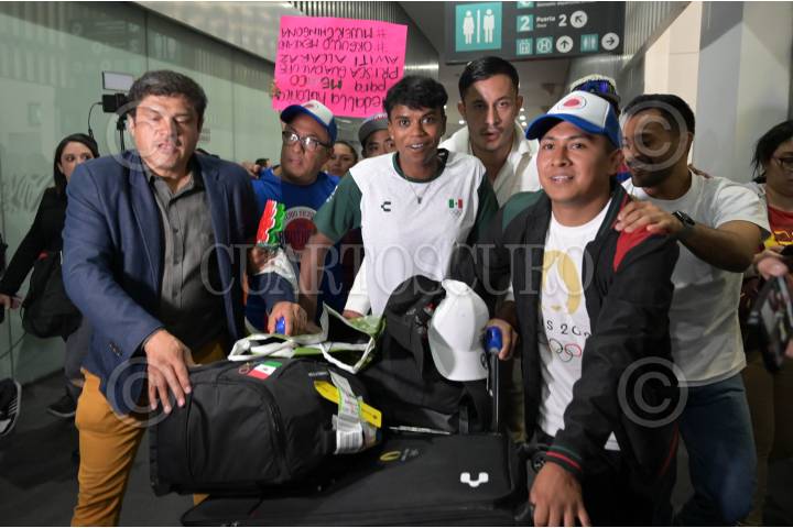 CIUDAD DE MÉXICO, 01AGOSTO2024.- Prisca Awiti llegó esta noche a la capital del país luego de su participación en los juegos olímpicos de París 2024, dónde consiguió la medalla de plata en Judo. FOTO: DANIEL AUGUSTO/ CUARTOSCURO.COM