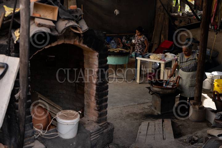 LA TRINIDAD TENEXYECAC, TLAXCALA, 21DICIEMBRE2024.- En la comunidad de La Trinidad, alrededor de 120 familias continúan el legado alfarero que las generaciones han heredado. Sin embargo, esta práctica ha acarreado daños a la salud como enfermedades degenerativas y cantidades altas de plomo en la sangre por el uso de la “greta" (esmalte a base de óxido de plomo) para el brillo característico de las piezas. En respuesta a lo anterior, la Escuela Nacional de Cerámica, en alianza con la Fundación Diez Morodo y Conahcyt, y con ayuda de las y los pobladores de la localidad, logró la construcción del primer horno de leña comunitario para el mejoramiento de la alfarería en Tlaxcala, el cual reemplazará a los conocidos como hornos de botella. Este nuevo modelo de tiro invertido permite a las y los maestros alfareros controlar la temperatura mediante la ayuda de un termómetro y no “a ojo”, como se acostumbraba, evitando el contacto directo con el fuego y la inhalación de gases y vapores tóxicos derivados. Otra mejora es la quema uniforme de las piezas, lo que evita las mermas en su producción, garantiza un mejor rendimiento y, por ende, mayor calidad y ganancias. A su vez, se incentivó el uso de esmaltes y tinturas libres de plomo a fin de garantizar una mejora a la salud inmediata y futura. En la imagen, Doña Clarita, cocinera tradicional y alfarera, prepara un pipián en una de las ollas moleras fabricadas en la localidad de la Trinidad Tenexyecac, Tlaxcala. FOTO: GALO CAÑAS/CUARTOSCURO.COM