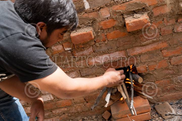LA TRINIDAD TENEXYECAC, TLAXCALA, 21DICIEMBRE2024.- En la comunidad de La Trinidad, alrededor de 120 familias continúan el legado alfarero que las generaciones han heredado. Sin embargo, esta práctica ha acarreado daños a la salud como enfermedades degenerativas y cantidades altas de plomo en la sangre por el uso de la “greta" (esmalte a base de óxido de plomo) para el brillo característico de las piezas. En respuesta a lo anterior, la Escuela Nacional de Cerámica, en alianza con la Fundación Diez Morodo y Conahcyt, y con ayuda de las y los pobladores de la localidad, logró la construcción del primer horno de leña comunitario para el mejoramiento de la alfarería en Tlaxcala, el cual reemplazará a los conocidos como hornos de botella. Este nuevo modelo de tiro invertido permite a las y los maestros alfareros controlar la temperatura mediante la ayuda de un termómetro y no “a ojo”, como se acostumbraba, evitando el contacto directo con el fuego y la inhalación de gases y vapores tóxicos derivados. Otra mejora es la quema uniforme de las piezas, lo que evita las mermas en su producción, garantiza un mejor rendimiento y, por ende, mayor calidad y ganancias. A su vez, se incentivó el uso de esmaltes y tinturas libres de plomo a fin de garantizar una mejora a la salud inmediata y futura. En la imagen, el joven alfarero Adbías Solano enciende el fuego para la primer quema del nuevo Horno de Tiro Invertido en La Trinidad Tenexyecac, Tlaxcala. FOTO: GALO CAÑAS/CUARTOSCURO.COM