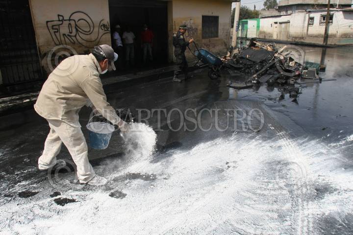 VALLE DE CHALCO, ESTADO DE MÉXICO, 16FEBRERO2010.- Una trabajador de CONAGUA rocía cal para evitar la propagación de infecciones en calles de la colonia San Isidro, tras la inundación que ocasionó el desbordamiento del canal de aguas negras "La Compañia". FOTO: SAÚL LÓPEZ/CUARTOSCURO.COM