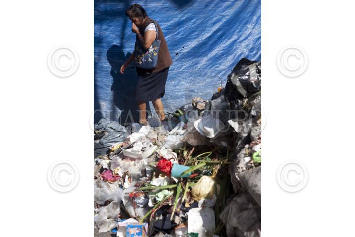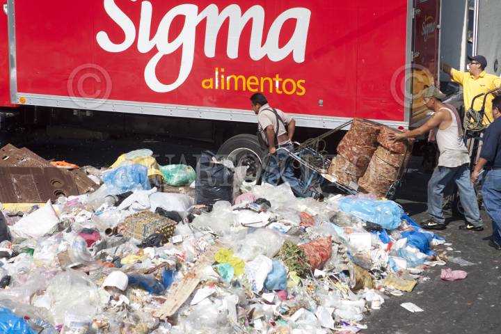 MÉXICO, D.F., 29DICIEMBRE2011.- En la esquina de Rosario y Corregidora en la Candelaria de la delegación Cuauhtémoc se formó un tiradero clandestino que sobrepasaba las 40 toneladas. Los trabajadores del GDF necesitaron varios viajes de camiones de carga para limpiar el basurero a cielo abierto. Mientras los trabajadores laboraban desde temprano en el punto, los vecinos tenían que caminar a pesar del mal olor de los desechos acumulados desde el pasado 23 de diciembre. Los señores de la limpieza señalaron que ciertamente el cierre del bordo poniente a dificultado la limpieza de las calles ya que los camiones recolectores que antes daban de tres a cuatro vueltas hoy solamente hacen uno y también que las personas no separan de forma adecuada la basura. FOTO: MOISÉS PABLO/CUARTOSCURO.COM