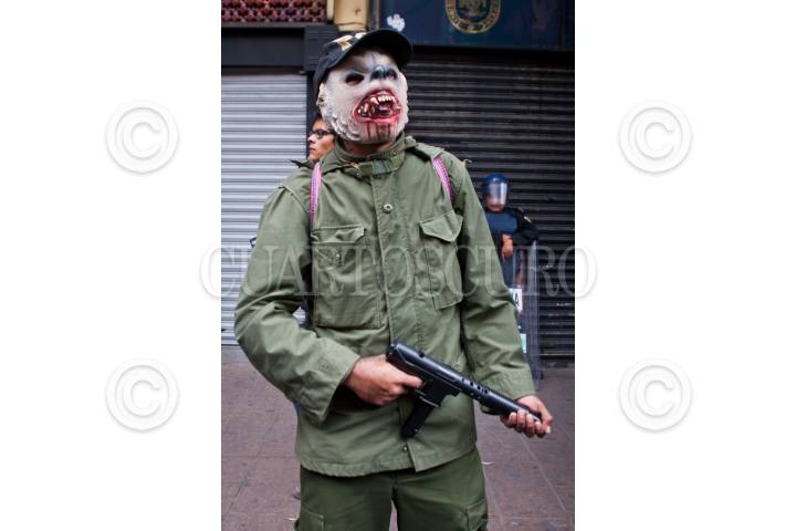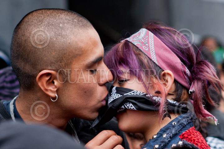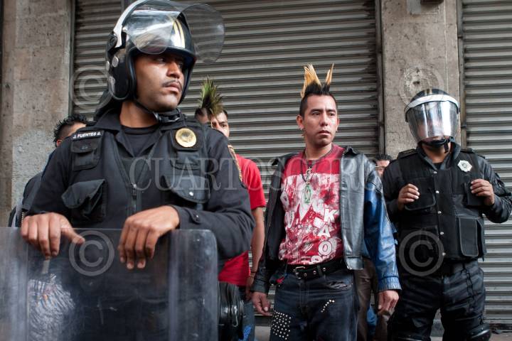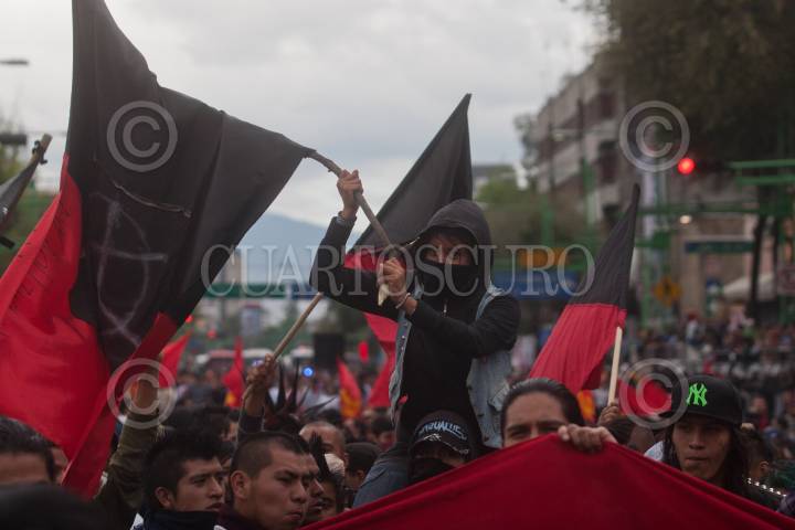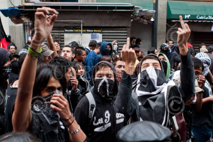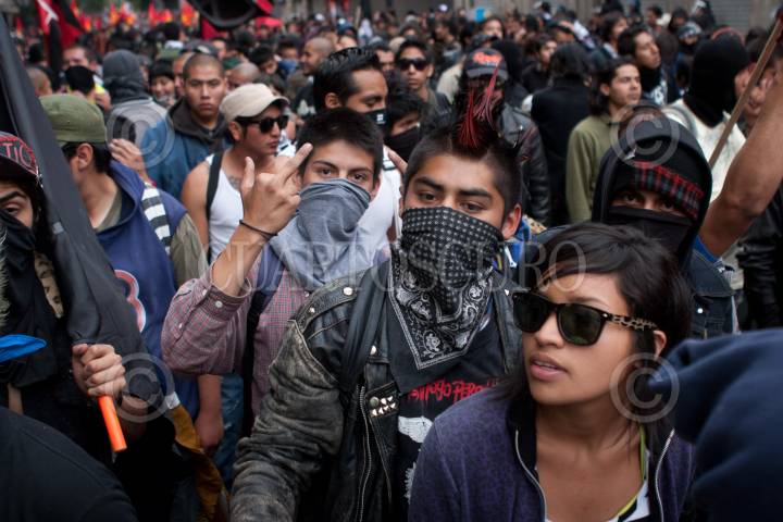 MÉXICO. D.F., 02OCTUBRE2011.- Miles de jóvenes marcharon para recordar la matanza de 1968 de estudiantes en Tlatelolco. El contingente de anarquistas iba fuertemente custodiado por elementos de la Secretaría de Seguridad Pública. FOTO: ISAAC ESQUIVEL/CUARTOSCURO.COM