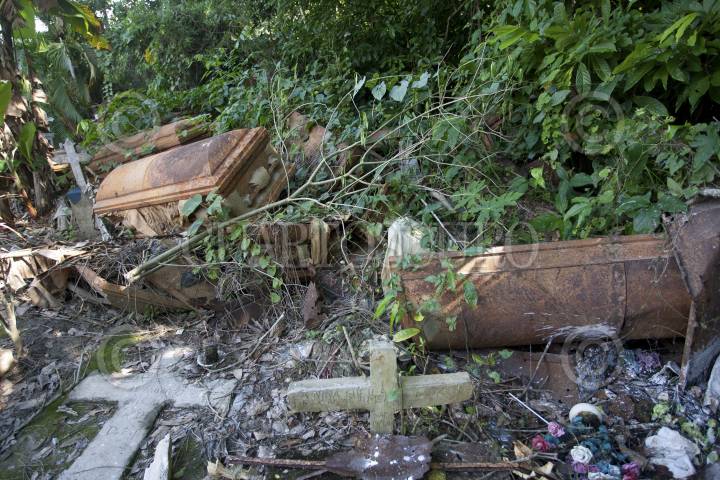 CUNDUACAN, TABASCO, 01NOVIEMBRE2012.- Cientos de cajas fúnebres, en las cuales descansaron igual numero de difuntos, yacen a la vista en la parte posterior del panteón ubicado en la colonia Cristal. De este cementerio de féretros se despiden olores nauseabundos y a ciencia cierta se desconoce realmente si aun contiene restos humanos. FOTO: MARCO POLO GUZMÁN HERNÁNDEZ /CUARTOSCURO.COM