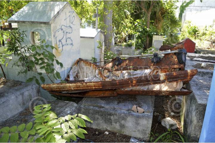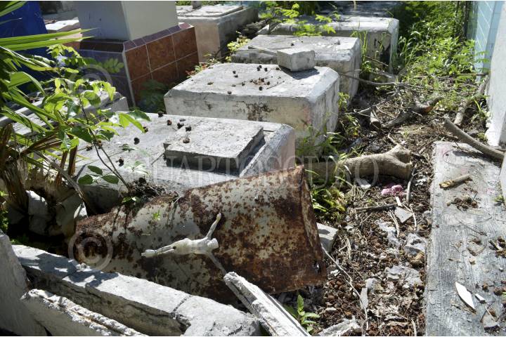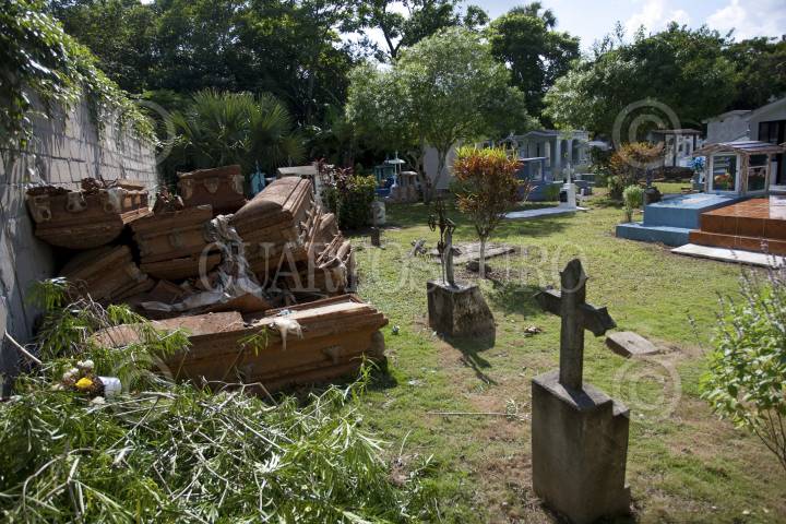 CANCÚN, QUINTANA ROO, 29OCTUBRE2015.- De las 4400 criptas en los panteones "Los Olivos" y "Los Alamos", 1480 se encuentran en pésimas condiciones, estos campo santo se encuentran en el olvido por parte de las autoridades y de familiares. Estas condiciones han generado una ola de robos y saqueos de tumbas; por ejemplo, en Los Alamos, el mas antiguo de la ciudad, enfrenta el problema serio del abandono, donde más de la mitad de las criptas esta deteriorada al ser blanco fácil de saqueo y hasta de actos de brujería y supercherías. Féretros en los andadores, criptas rotas, restos óseos expuestos a simple vista, chatarra y basura, se pudieron observar durante un recorrido. FOTO: ELIZABETH RUIZ /CUARTOSCURO.COM