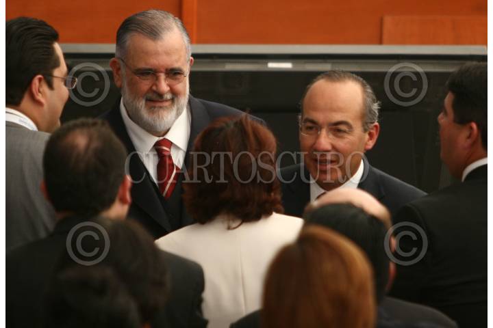 MÉXICO,D,F 15FEREBRO2008.- José Luis Soberanes Fenández Presidente de la Comisión Nacional de los Derechos Humanos acompañado por el Presidente de los Estados Unidos Mexicanos Felipe Calderon Hinojosa a las Instalaciones de la CNDH al sur de la ciudad de México en donde el ombusdman rindió su informe anual de actividades. FOTO: SASHENKA GUTIERREZ/CUARTOSCURO.COM