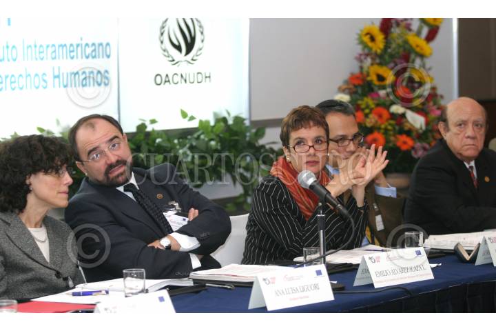 MÈXICO, D.F. 25NOVIEMBRE2005.- Se llevó a cabo la reunión interinstitucional de conclusiones, propuestas y compromisos con consejos y cuerpos directivos, donde participaron varios ombusman de varios estados de la república. En la foto, Ana Luisa Liguori, el ombusdman del DF, Emilio Alvarez de Icáza, Lorena González, Manuel Vidauri y el ombusdman de Guerrero, Juan Alarcón. FOTO: Miguel Dimayuga/CUARTOSCURO.COM