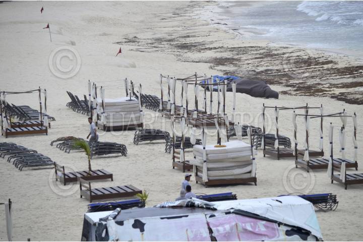 CANCÚN, QUNTANA ROO, 16OCTUBRE2015.- La onda tropical número 43 ha provocado fuertes lluvias en la entidad, el puerto a la navegación menor ha sido cerrado, las playas lucen vacías debido al mal tiempo. FOTO: ELIZABETH RUIZ/CUARTOSCURO.COM