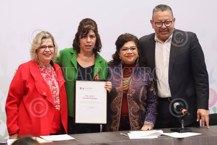 CIUDAD DE MÉXICO, 02DICIEMBRE2024.- La jefa de Gobierno de la capital, Clara Brugada, entrego un reconocimiento a la Dra. Andrea González Rodríguez por si trabajo al frente del Centro para la Prevención y Atención Integral del VIH/Sida en la capital. FOTO: DANIEL AUGUSTO/ CUARTOSCURO.COM
