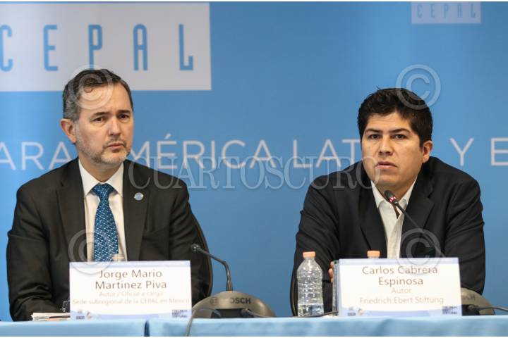 CIUDAD DE MÉXICO, 26JUNIO2024.- Jorge Mario Martínez Pivac oficial a cargo sede subregión al de la CEPAL en México y Carlos Cabrera Espinosa, autor Friedrich Ebert Stiftung presentaron la publicación de CEPAL y la Fundación Friedrich Ebert (FES) con temas claves para diseñar e implementar una política de desarrollo productivo sostenible en México. FOTO: ANDREA MURCIA /CUARTOSCURO.COM