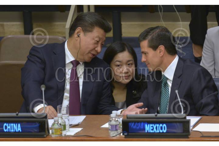 NUEVA YORK, ESTADOS UNIDOS, 27SEPTIEMBRE2015.- El presidente Enrique Peña Nieto participó en la inauguración de la “Cumbre de Igualdad de Género y Empoderamiento de las Mujeres: un compromiso para la acción”, durante la 70ª Asamblea General de la ONU, en donde se reunió con los homólogos de otros países. En la imagen, el presidente de China, Xi Jinping saluda a Enrique Pela Nieto. FOTO: PRESIDENCIA /CUARTOSCURO.COM