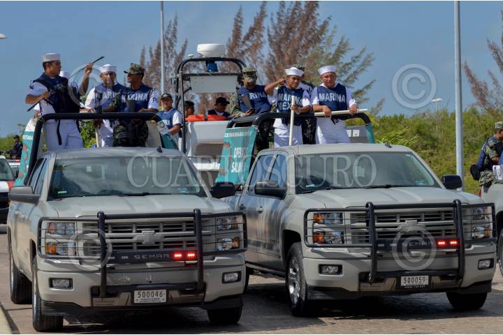 CANCÚN, QUINTANA ROO, 15JULIO2015.- 500 agentes policiales participaron en el banderazo de inicio de Operativo Seguro 2015, para brindar seguridad a visitantes nacionales y extranjeros durante el periodo vacacional. FOTO: ELIZABETH RUIZ /CUARTOSCURO.COM