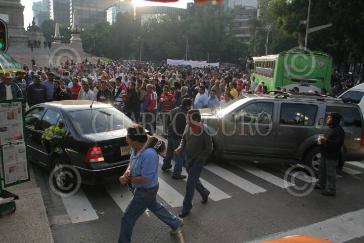 MÉXICO, D.F., 03SEPTIEMBRE2010.- Cientos de Transportistas se manifestaron del Ángel de la Independencia en Paseo de la Reforma al Zócalo Capitalino. FOTO: ENRIQUE ORDÓÑEZ/CUARTOSCURO.COM