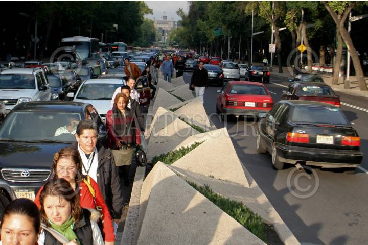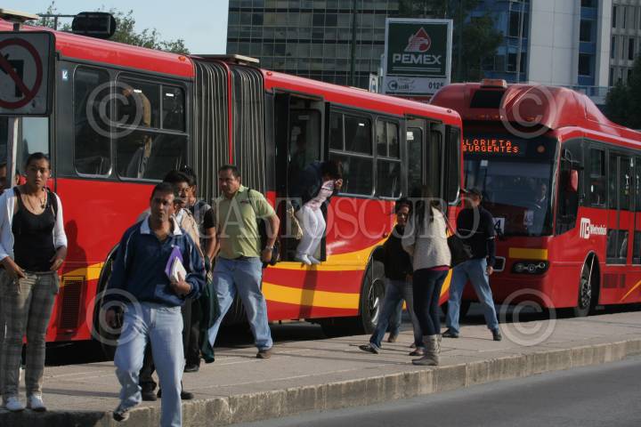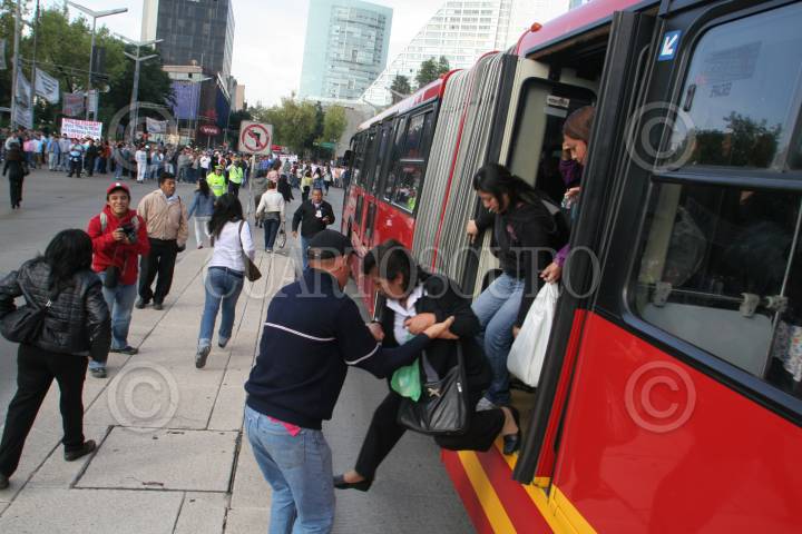 MÉXICO, D.F., 03SEPTIEMBRE2010.- Pasajeros que viajaban en el Metrobus, tuvieron que descender de la unidad al encontrarse parada por la marcha de transportistas que partió del Ángel de la Independencia al Zócalo Capitalino. FOTO: ENRIQUE ORDÓÑEZ/CUARTOSCURO.COM