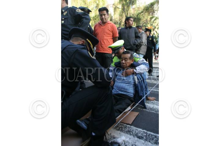 MÉXICO, D.F., 03SEPTIEMBRE2010.- Un señor fue atropellado en la Avenida Paseo de la Reforma a la Altura del Angel de la Independencia antes de que iniciara la marcha de ientos de Transportistas por una camioneta blanca. FOTO: ENRIQUE ORDÓÑEZ/CUARTOSCURO.COM