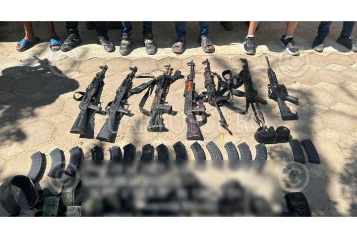 COYUCA DE BENÍTEZ, GUERRERO, 28JULIO2025.- Siete personas fueron detenidas durante un operativo en esta localidad. También se aseguraron armas largas, equipo táctico, droga y vehículos. El operativo fue realizado por personal de la Secretaría de Marina, en coordinación con la Secretaría de la Defensa Nacional, Guardia Nacional, Fiscalía General de la República y Secretaría de Seguridad y Protección Ciudadana. FOTO: SEMAR / CUARTOSCURO.COM