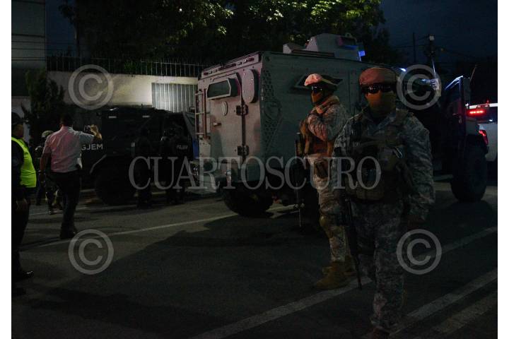 METEPEC, ESTADO DE MÉXICO, 21ENERO2025.- Un fuerte dispositivo de seguridad se desplegó en la colonia Lázaro Cárdenas en Metepec, después de que fueran ultimados un ex Fiscal Regional en Cuautitlán de la FGJEM, el cual se encontraban bajo investigación y un empresario, mientras se encontraban en un restaurante, la zona se encuentra resguardado por policía municipal, estatal y elementos del Ejército y Guardia Nacional. FOTO: CRISANTA ESPINOSA AGUILAR /CUARTOSCURO.COM