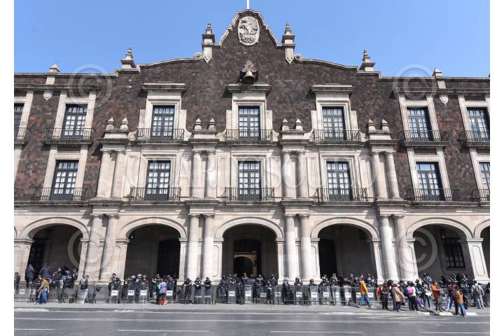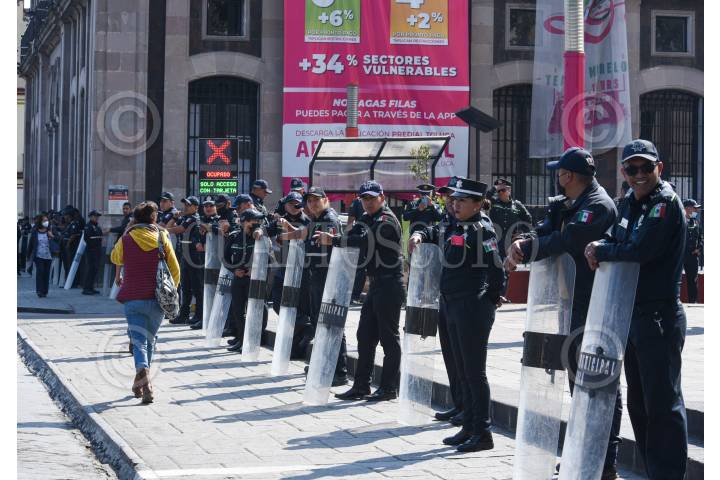 Refuerzan seguridad en la zona centro de Toluca con policías municipales y estatales previó a una marcha de feministas radicales por la tarde de este miércoles.