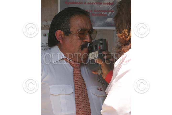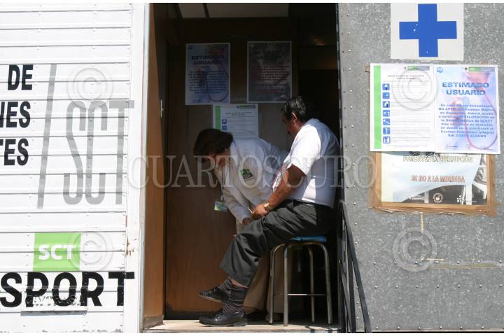 MEXICO, D.F., 15MARZO2008.- Conductores de autobuses de pasajeros y camiones de carga principalmente, son sometidos a pruebas físicas en el reten instalado por la Secretaría de Comunicaciones y Transporte, para verificar que su estado de salud sea idoneo para llegar a su destino, como parte del operativo de seguridad vial de Semana Santa. FOTO: MOISÉS PABLO/CUARTOSCURO.COM