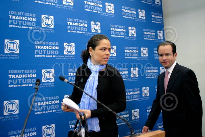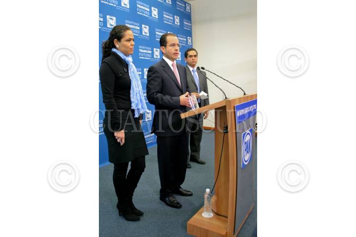 MÉXICO, D.F. 13ENERO2010.- Mariana Gomez del Campo, presidenta del PAN-DF y Cesar Nava, presidente del PAN durante una conferencia de prensa en donde anunciaron que organizaran una consulta ciudadana del 17 al 24 de enero para conocer la opinión de la sociedad en torno a la aprobación de los matrimonios gay y la opción de que puedan adoptar niños. FOTO: RODOLFO ANGULO/CUARTOSCURO.COM