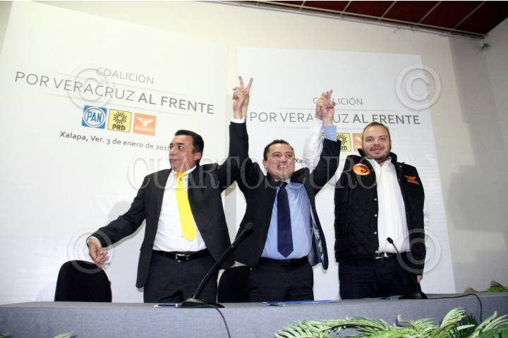 XALAPA, VERACRUZ, 03ENERO2018.- Anoche, presentaron los partidos PRD, PAN Y MC, su documentación ante el OPLE para solicitar su registro de coalición denominado "Por Veracruz al Frente" de cara al siguiente proceso electoral FOTO: ALBERTO ROA /CUARTOSCURO.COM