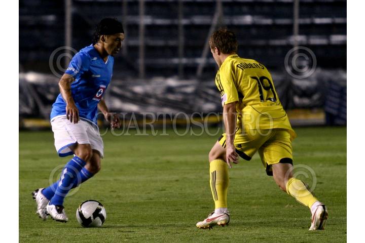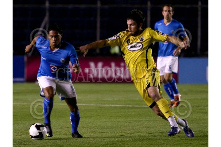 MÉXICO, D.F., 26AGOSTO2009.- Ramon Nuñez del Cruz Azul pelea el balón durante el encuentro en contra del Columbus Crew de Estados Unidos del torneo CONCACAF Champions League. La maquina celeste del Cruz Azul vencio 5 goles a 0 a su oponente en el estadio Azul. FOTO: RODOLFO ANGULO/CUARTOSCURO.COM