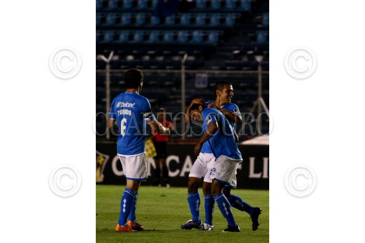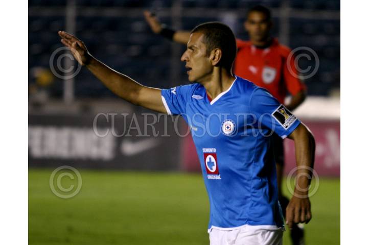 MÉXICO, D.F., 26AGOSTO2009.- Ramon Nuñez de la maquina celeste del Cruz Azul festeja su anotación en contra del Columbus Crew de Estados Unidos del torneo CONCACAF Champions League. La maquina celeste del Cruz Azul vencio 5 goles a 0 a su oponente en el estadio Azul. FOTO: RODOLFO ANGULO/CUARTOSCURO.COM