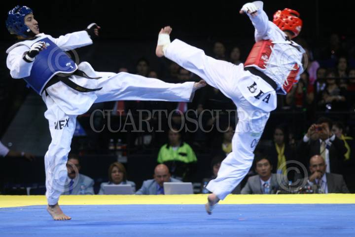 MÉXICO, D.F., 14NOVIEMBRE2009.- Idulio Isaias Gomez de México vencedor de la final del encuentro de la liga mundial de Taekwondo celebrada en el Palacio de los Deportes. FOTO: SÁSHENKA GUTIÉRREZ/CUARTOSCURO.COM