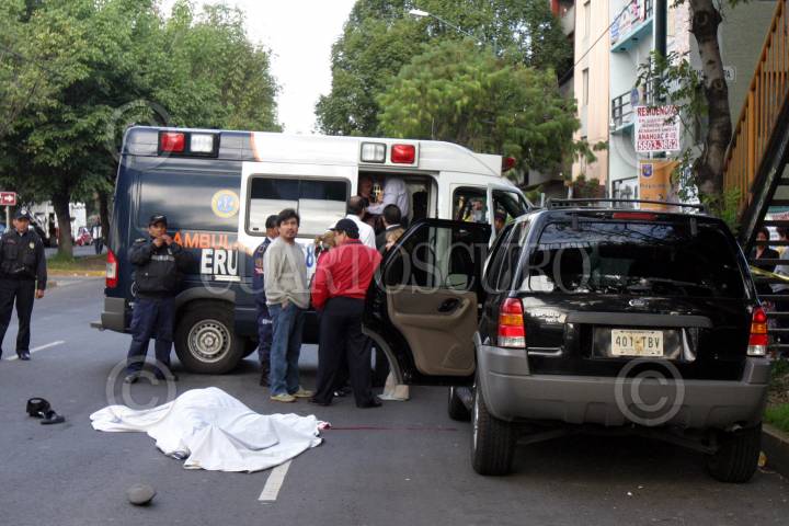 MÉXICO D.F., 29AGOSTO2006.- Una persona fue asesinada a balazos al oponerse al asalto y robo de su camioneta después de dejar a su hijo en la escuela, los delincuentes escaparon en una moto por la calzada del hueso y miramontes en coapa. FOTO: Pedro Marrufo/CUARTOSCURO.COM